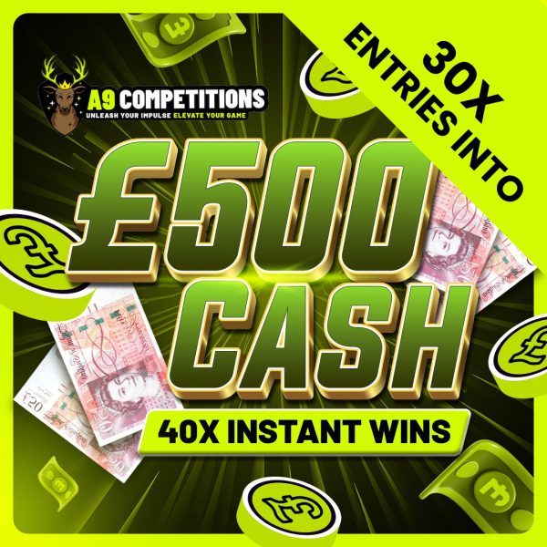 30 x Entries to £500 Cash + 40 x Instants